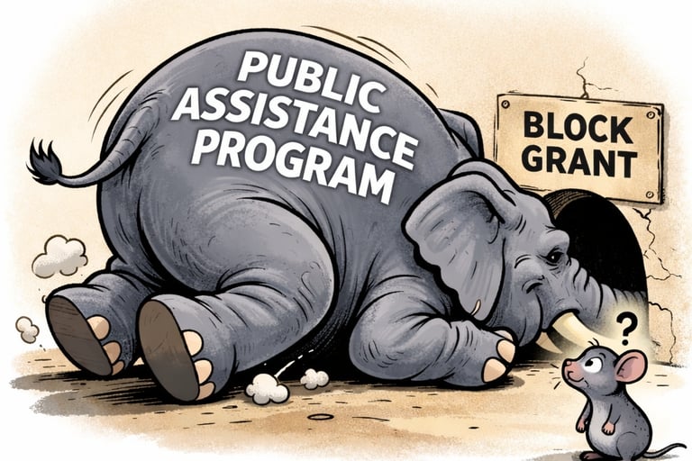 What does the statute say about the PA program? Does it authorize a block grant program? The fast answer is "no," but the details matter. PA is not an open-ended funding stream. It is a detailed statutory program grounded in the Stafford Act, which specifies: (a) the types of work that are eligible for assistance; (b) the conditions under which funding is provided; and (c) the federal role in reviewing and approving projects. In other words, the “elephant” is built into the statute.