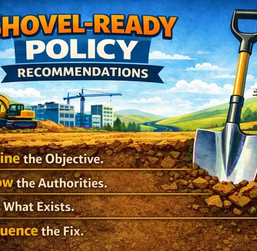 A shovel-ready recommendation requires deep familiarity with the governing legal framework: statutes, regulations, and agency policy. This is not just about what the law says, but how it has been interpreted, where discretion exists, and where constraints are real.